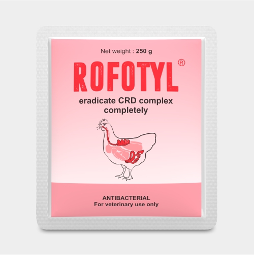 ROFOTYL is a powder preparation containing enrofloxacin and tylosin, which is effective in treating CRD complex, colibacillosis, coryza, and cholera in poultry.